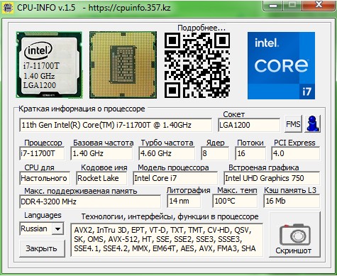 Кратко о процессоре i7-11700T: